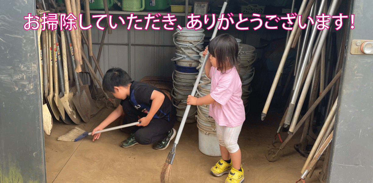 園主が買った牛糞堆肥をたっぷり使っており、支柱、農具はこちらで用意してます。